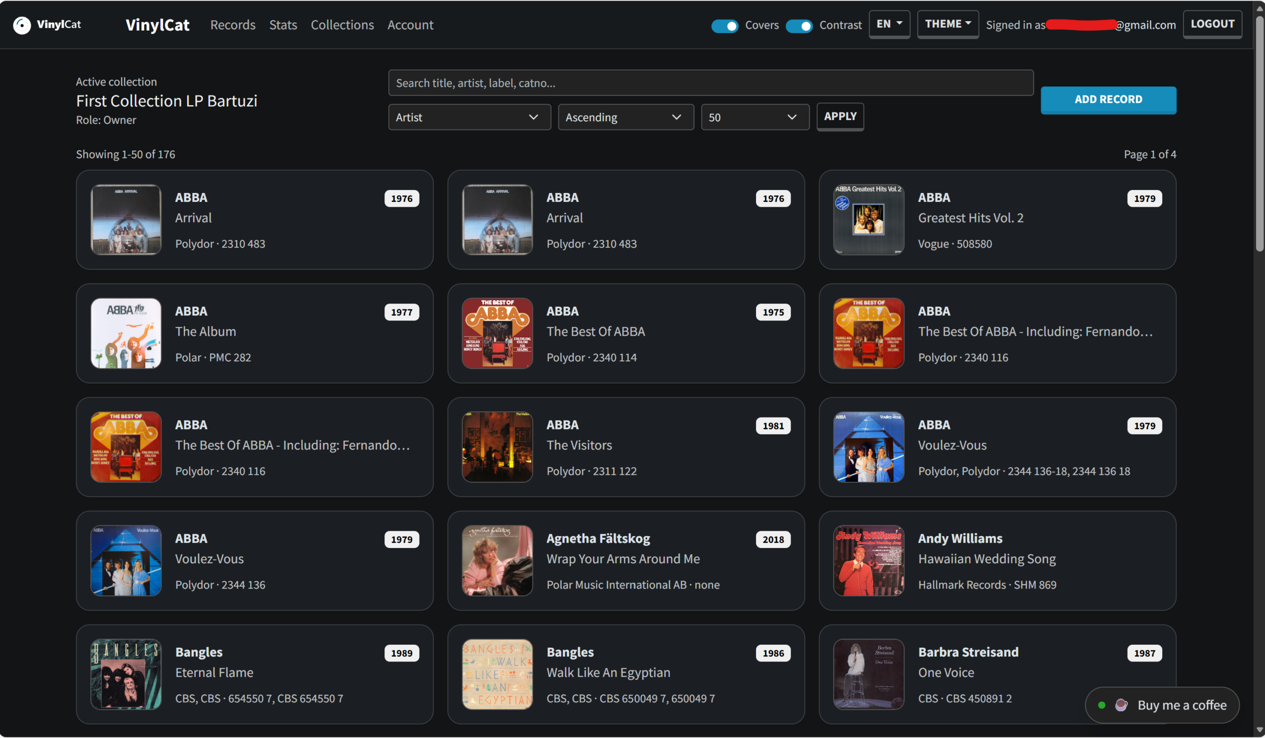 - Add a record (Discogs-assisted or fully manual).