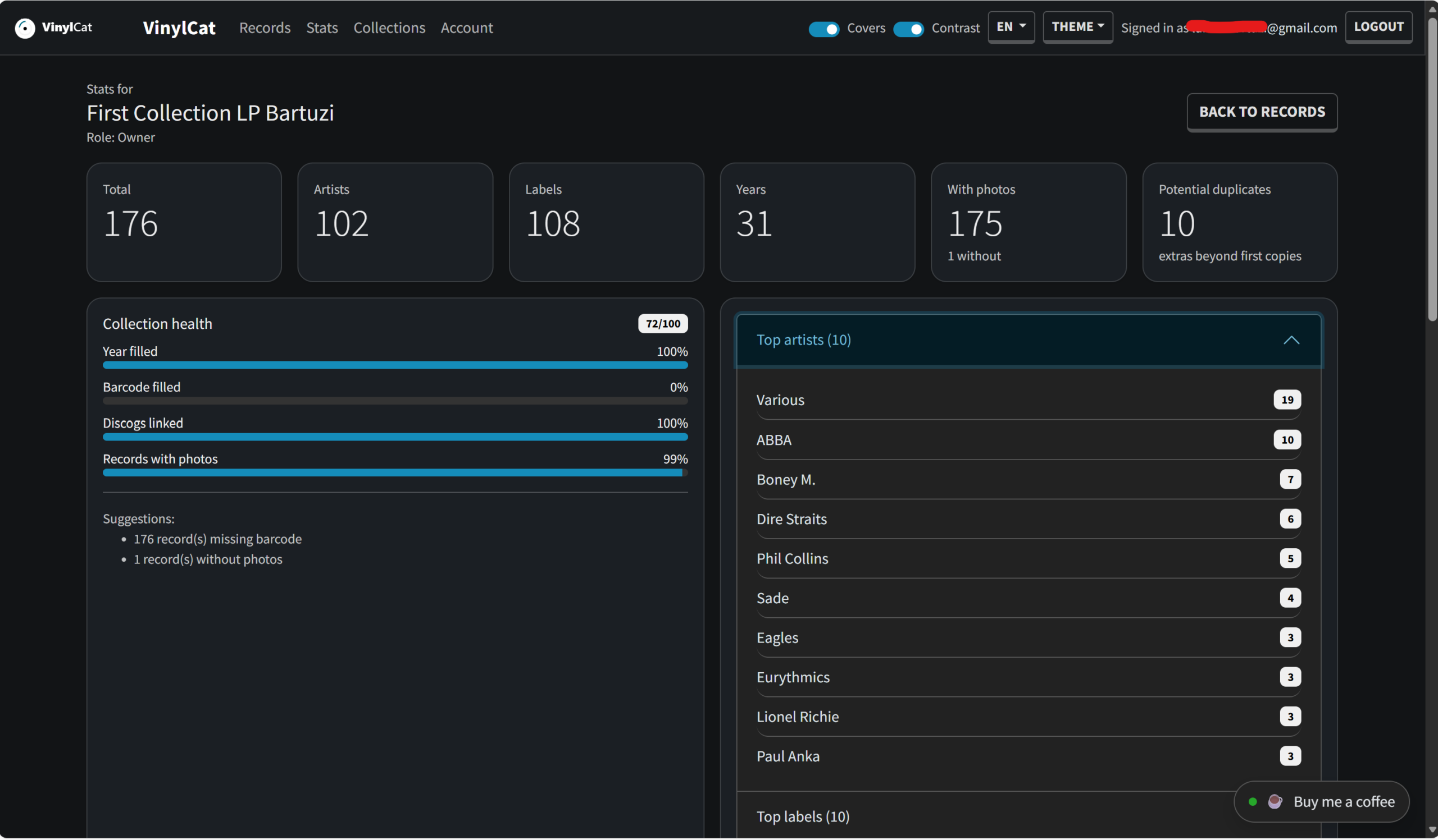 - Stats & insights: see top artists/labels and explore your collection from a “library” perspective.